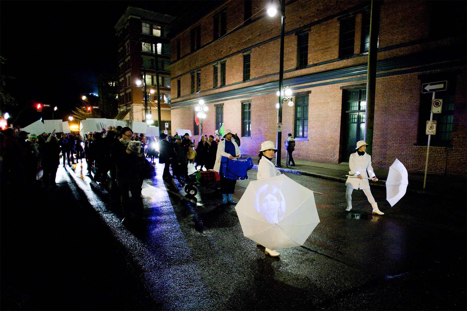 A combination of Japanese classical dance influenced movement, an original score featuring taiko, shakuhachi and biwa, and projected photographs of people and places in the heart of Vancouver's oldest neighbourhood commissioned from a team of Hope in Shadows community photographers. EN is a celebration of how people are linked to each other over time and space, and how the souls of all generations have danced in the rain of Vancouver. More Info: Tomoe Arts.