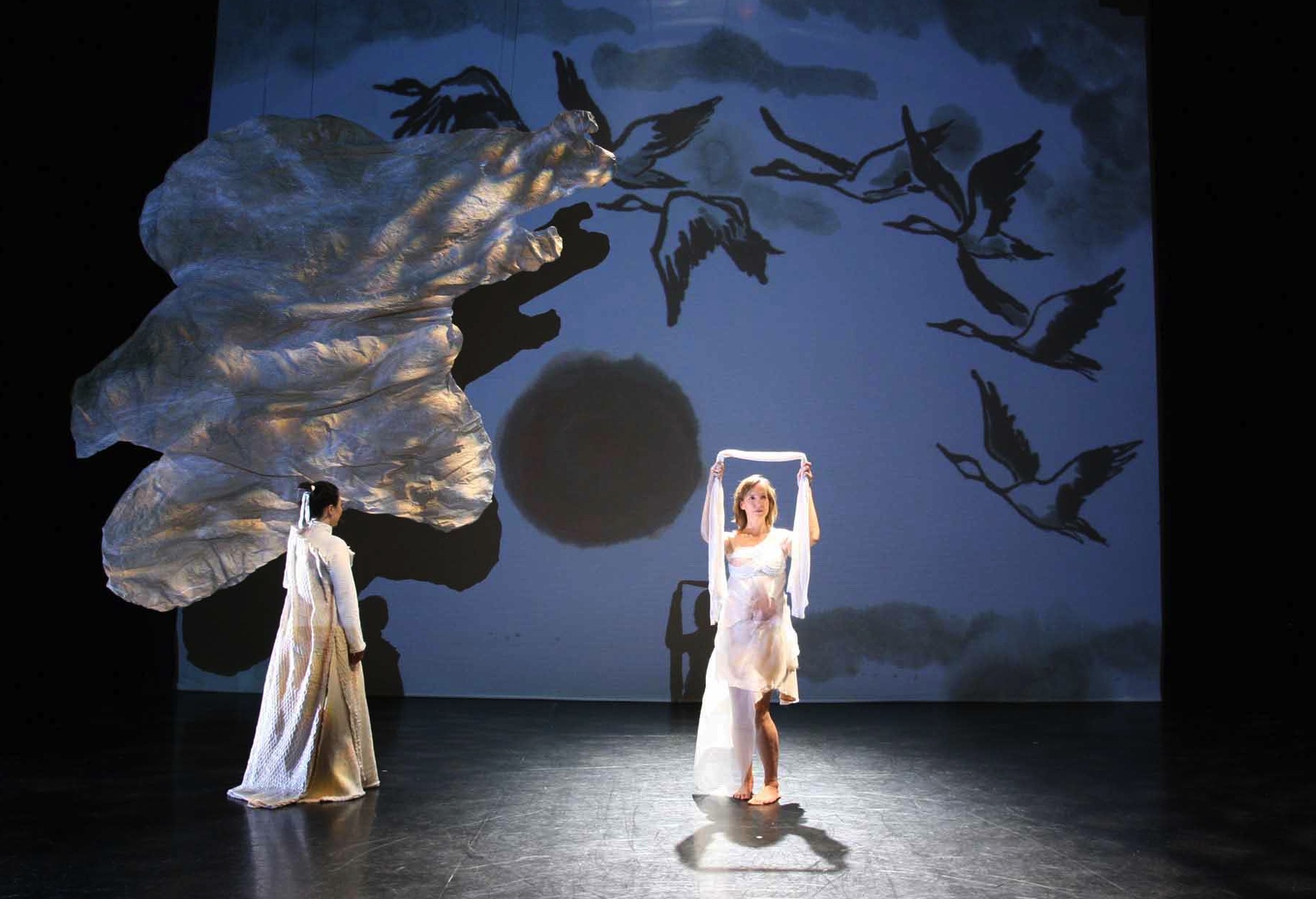 A blend of live music, spoken text based on O-Chonghui's short story Chingnyo, a contemporary take on the myth of The Weaver Girl and the Cowherd. Movement was based on Japanese classcial dance, but extended far into physical storytelling and dance-theatre. Video excerpts of the show