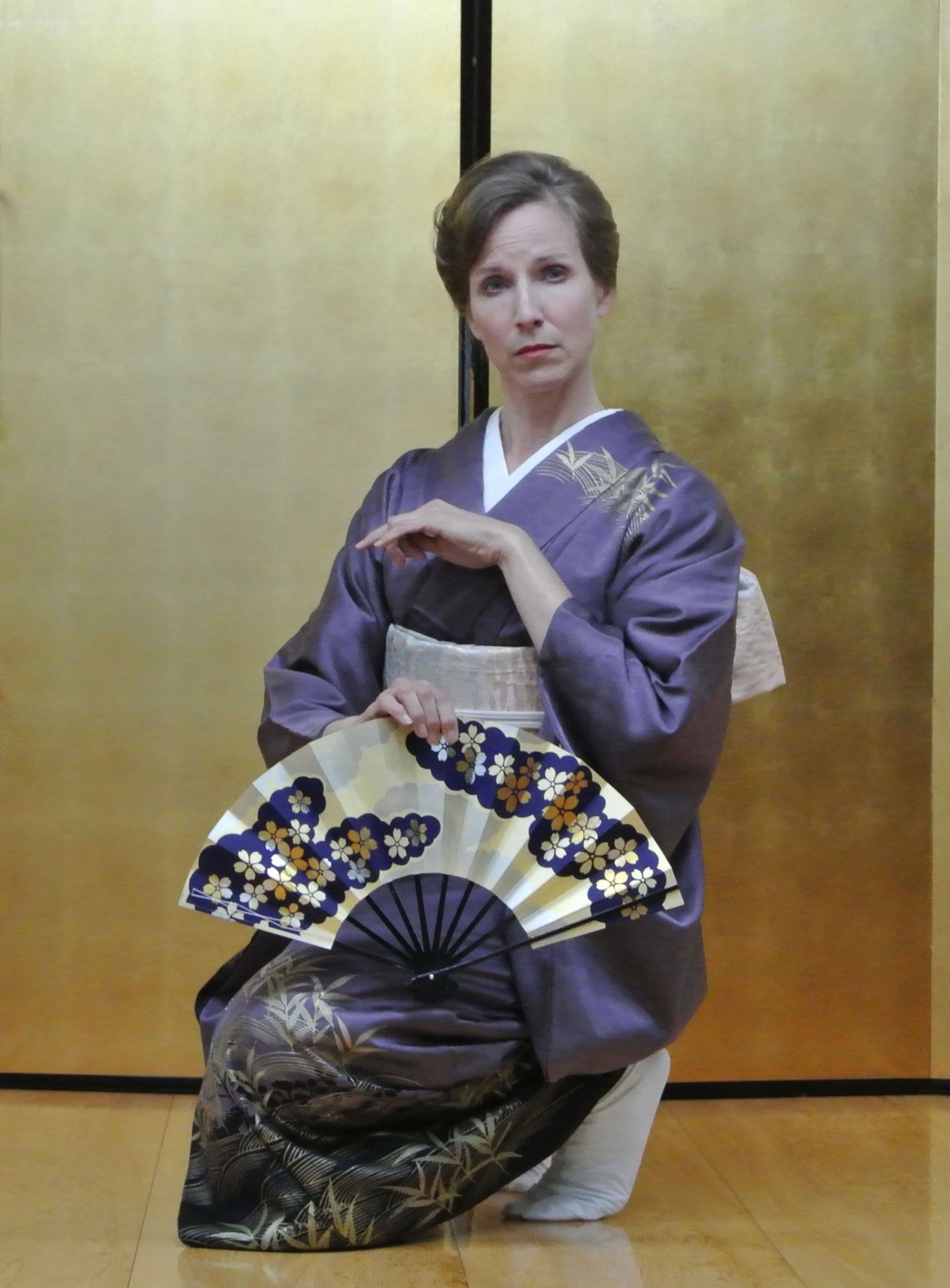 Noh is a chanted and dance form of theatre which originated in 15th century Japan. I am student of the Kita School and have studied with noh professional Richard Emmert and master teacher/actor Ōmura Sadamu. I continue my training in utai (chant) and shimai (dance) on my trips to Japan and now through online chanting lessons. I have danced in numerous recitals, and performed the shite role in a a full hakama-noh version of the play Tomoe.