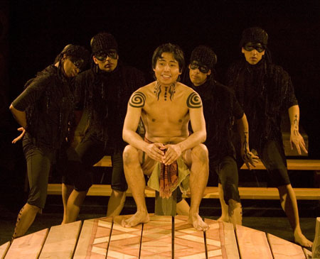 The Lone Tusker is South Indian playwright and director K.N. Panikkar's exploration into the individual in society. The lead character is a kutiyattam actor who leaves society to explore the forest, and ends up building a new "house" with the wild spirits living there. This production involved actor/dancers from a variety of disciplines: hula, Tahitian dance, and bharatnatyam and explored the splitting or connection of voice and body, having separate actors embody either the voice or body of a single character.